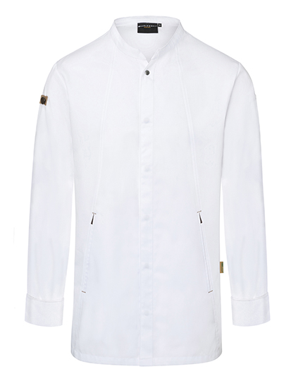 Die Kochjacke besticht zudem durch ihren modernen, taillierten Schnitt, der für eine elegante Silhouette sorgt. Der fein gerippte Kragen und die langärmligen Manschetten, zusammen mit seitlichen Schlitzen für mehr Bewegungsfreiheit, machen diese Jacke nicht nur bequem, sondern auch schnittig. Stilelemente wie der grüne Knopf verleihen der Jacke eine einzigartige Note. Diese Details unterstreichen das Engagement der Marke Karlowsky für Qualität und ansprechendes Design, das Professionalität ausstrahlt.